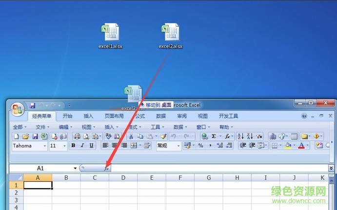 5.點(diǎn)擊任務(wù)欄的microsoft office excel 2007后,我們就新建了一個(gè)空白的excel窗口,然后把桌面上需要打開(kāi)的excel2拖到這個(gè)窗口來(lái),這樣桌面就有兩個(gè)excel窗口了