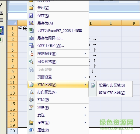 6.在向右移動(dòng)鼠標(biāo)到設(shè)置打印區(qū)域