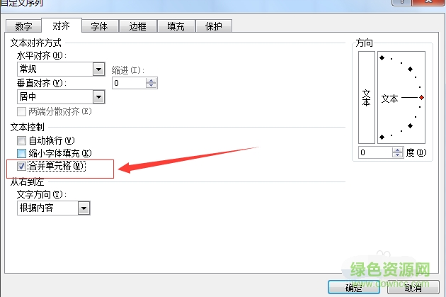 6.在“設(shè)置單元格格式”對(duì)話框中選擇“對(duì)齊”選項(xiàng)卡,勾選“合并單元格”,點(diǎn)擊“確定”按鈕。