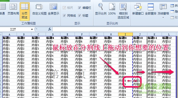 Alt+V 如果選中的單元格包括多列,則應(yīng)用或取消垂直分割線