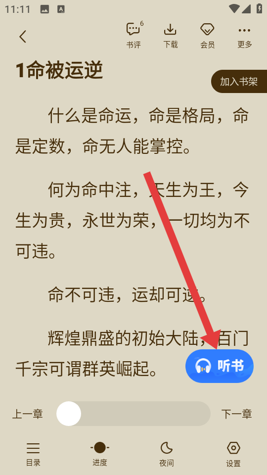 3、在閱讀界面中,點擊右側(cè)藍(lán)色的聽書按鈕。
