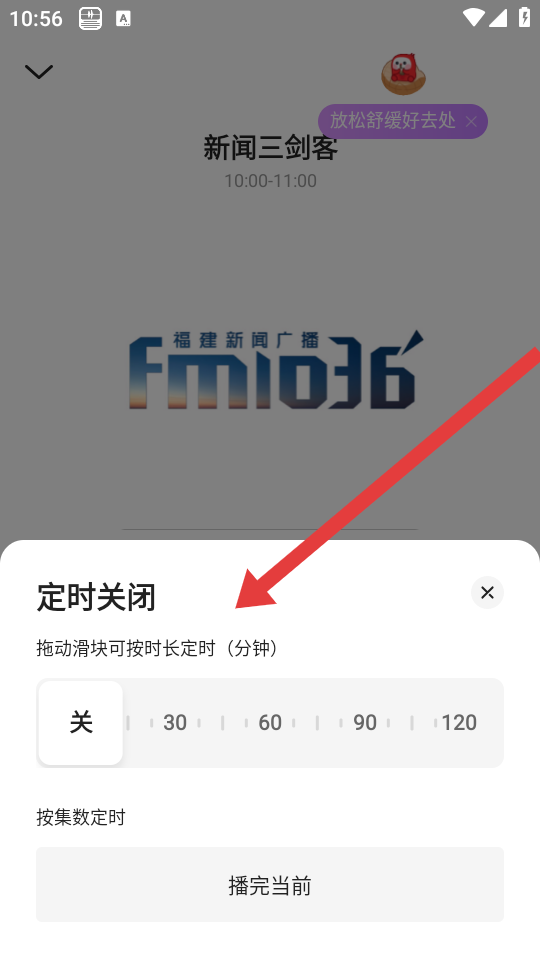 2、在電臺播放的界面中,需要點擊定時功能相關圖標,彈出定時關閉設置的面板。
