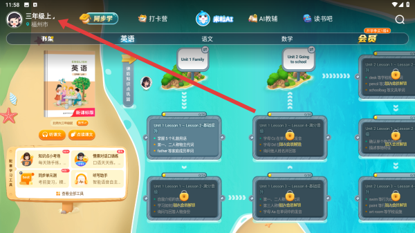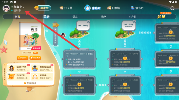 3、在確定后返回到主頁(yè)中,可以看到左上角顯示未五年級(jí)上說明更改成功。