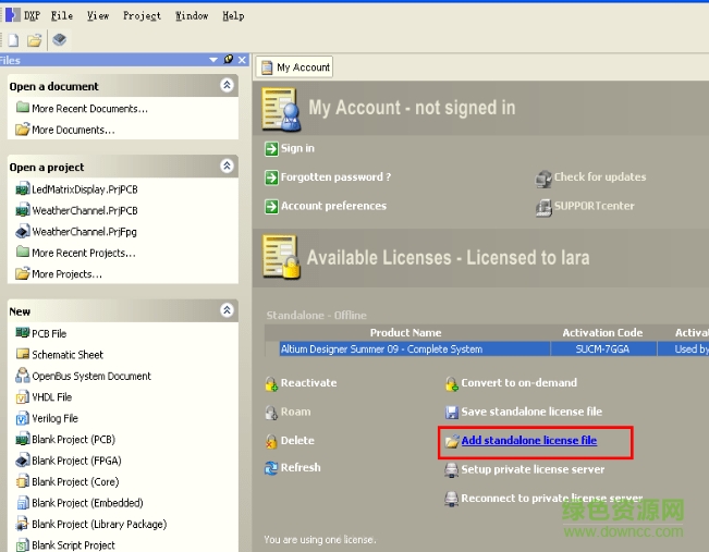 14.啟動DXP,運行菜單DXP->My Account,點擊Add Standalone License file,加載前面生成的license文件,修改到此完成。