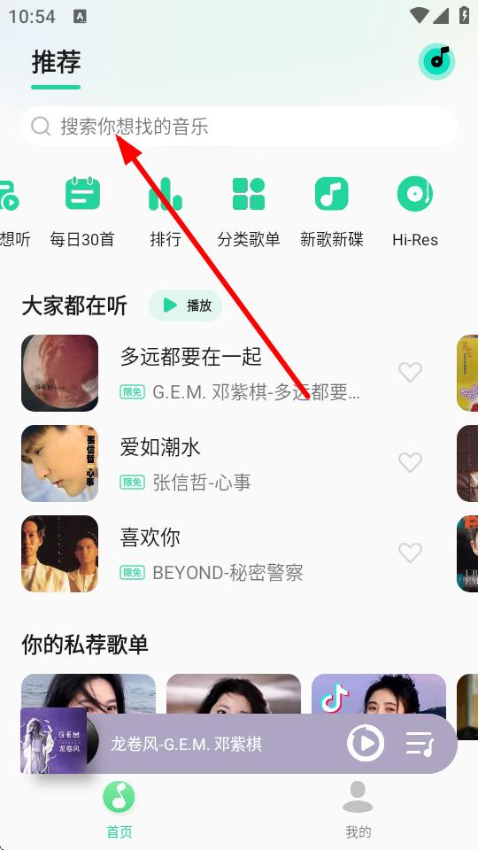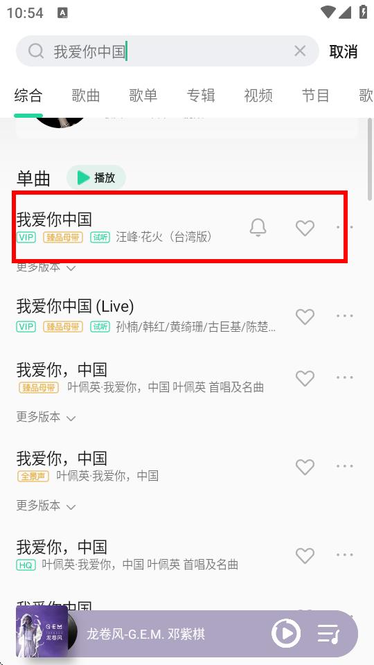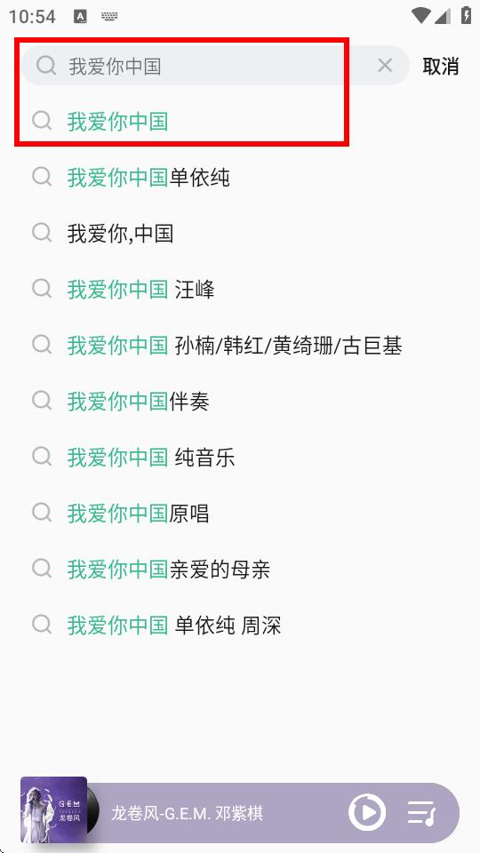 3、在搜索欄中輸入你想要搜索的歌曲名稱,例如我愛(ài)你中國(guó)。