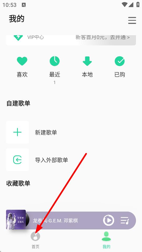 1、打開(kāi)魅族音樂(lè)應(yīng)用,點(diǎn)擊底部導(dǎo)航欄中的首頁(yè)。