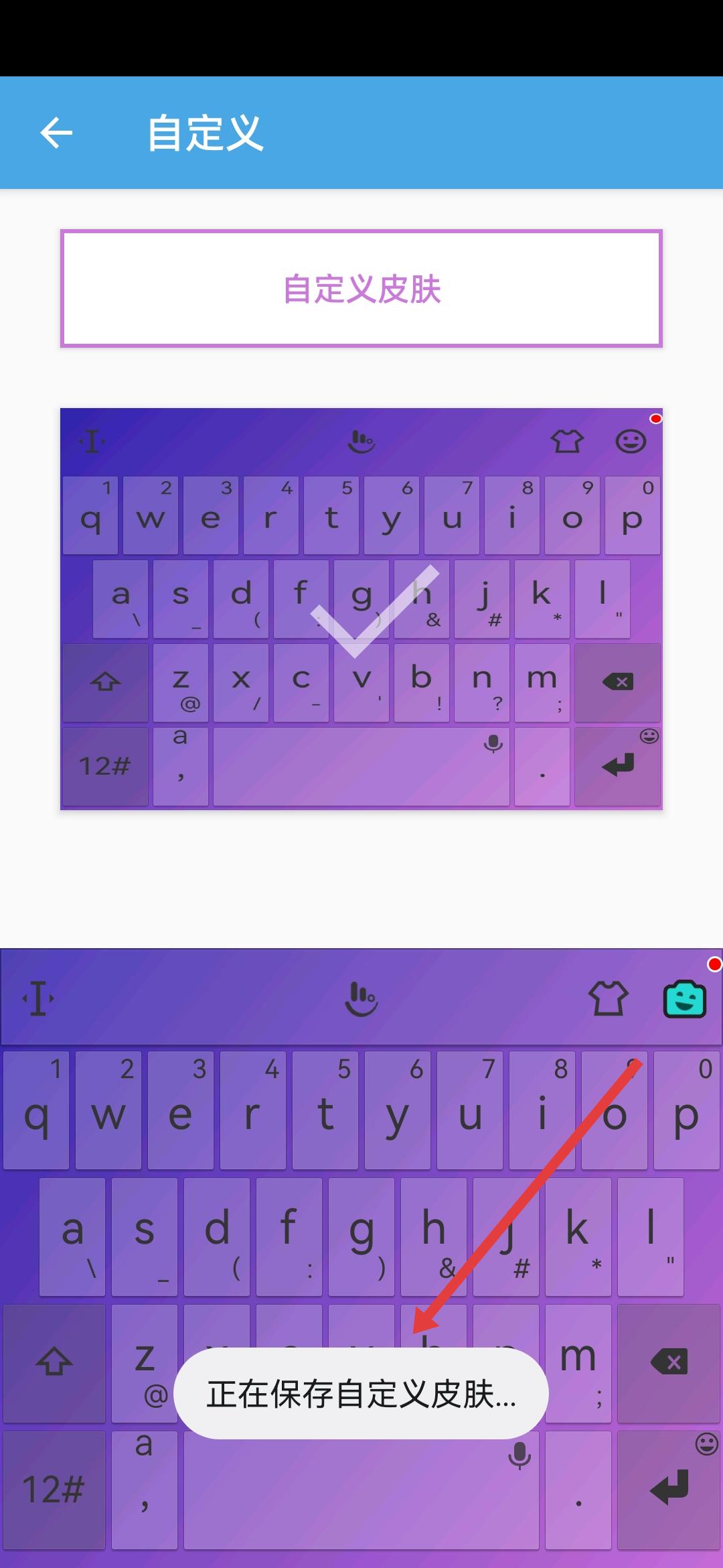 4、等待頁(yè)面顯示正在保存自定義皮膚...,完成后自定義皮膚即可生效。