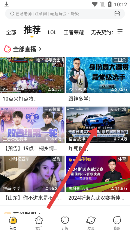 1、打開虎牙直播APP,找到想要觀看的直播間,點(diǎn)擊進(jìn)入目標(biāo)直播間頁面。