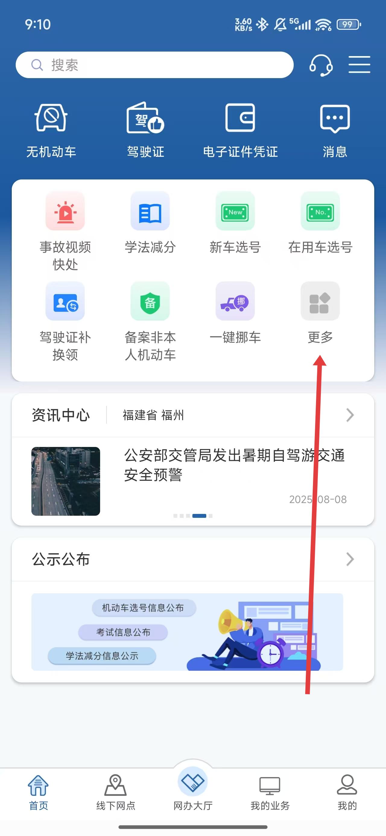 可辦理自主預約駕駛?cè)丝荚嚒⑻崆邦A約機動車檢驗、預選機動車號牌、申請補換領(lǐng)牌證、繳納交通違法罰款等業(yè)務(wù);