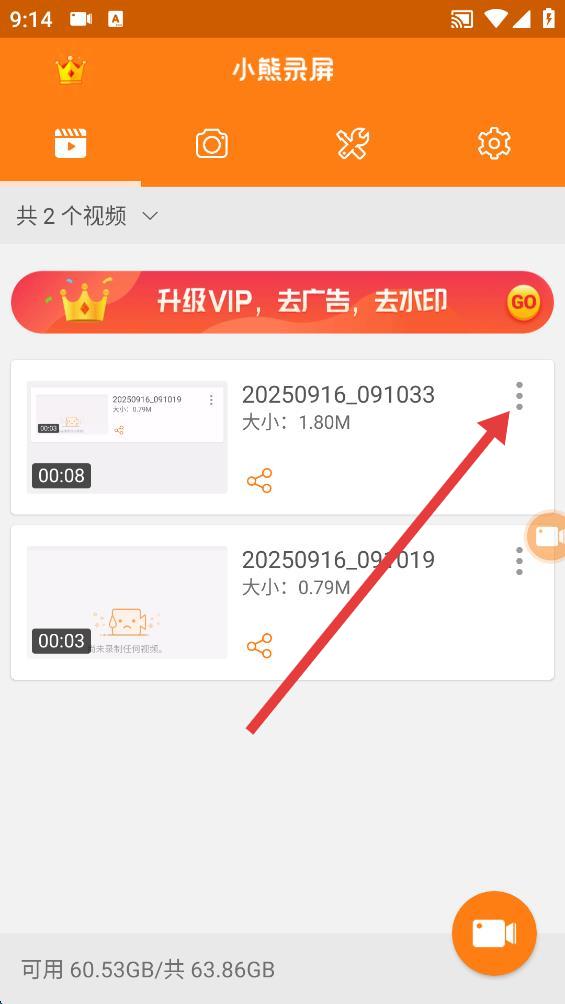 1、在主界面找到需要剪切的視頻,點(diǎn)擊視頻右側(cè)的圖標(biāo)。