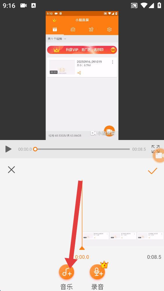 4、隨后在彈出的選項(xiàng)里選擇并點(diǎn)擊音樂按鈕,為視頻添加音樂。