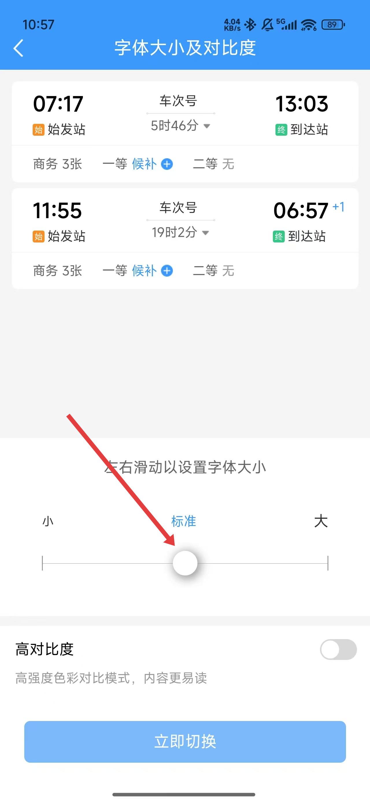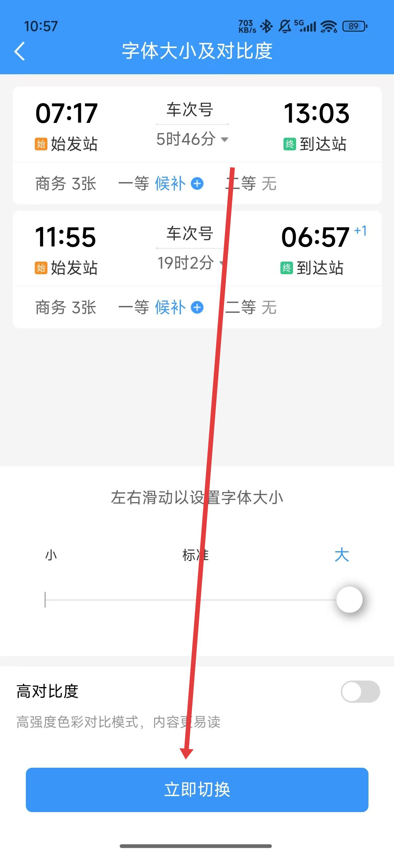 4、在設(shè)置好字體大小后,可以點(diǎn)擊立即切換按鈕,完成設(shè)置操作。