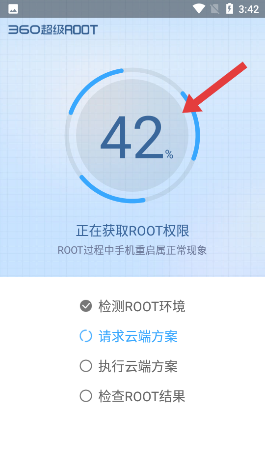 2、等待系統(tǒng)正在獲取ROOT權限,此過程中手機可能重啟,屬于正?,F象。