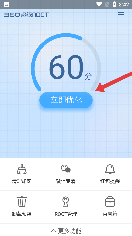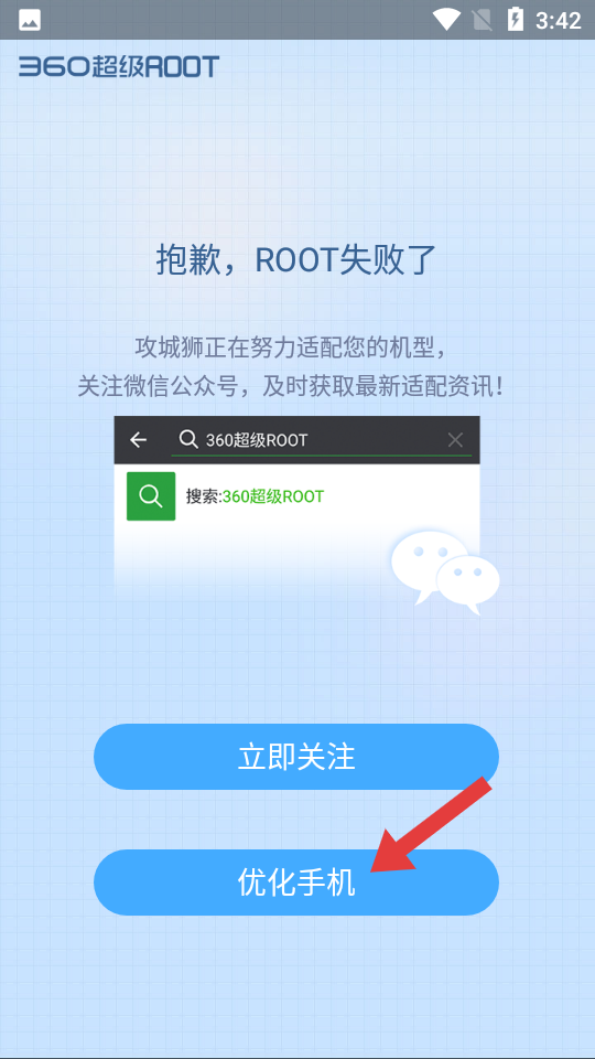 3、若ROOT失敗,點擊優(yōu)化手機的按鈕,進入手機優(yōu)化的界面。