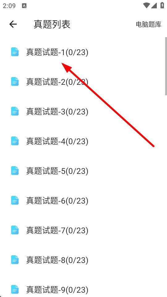 2、在真題的列表中,我們選擇真題試題-1,進入答題的界面。