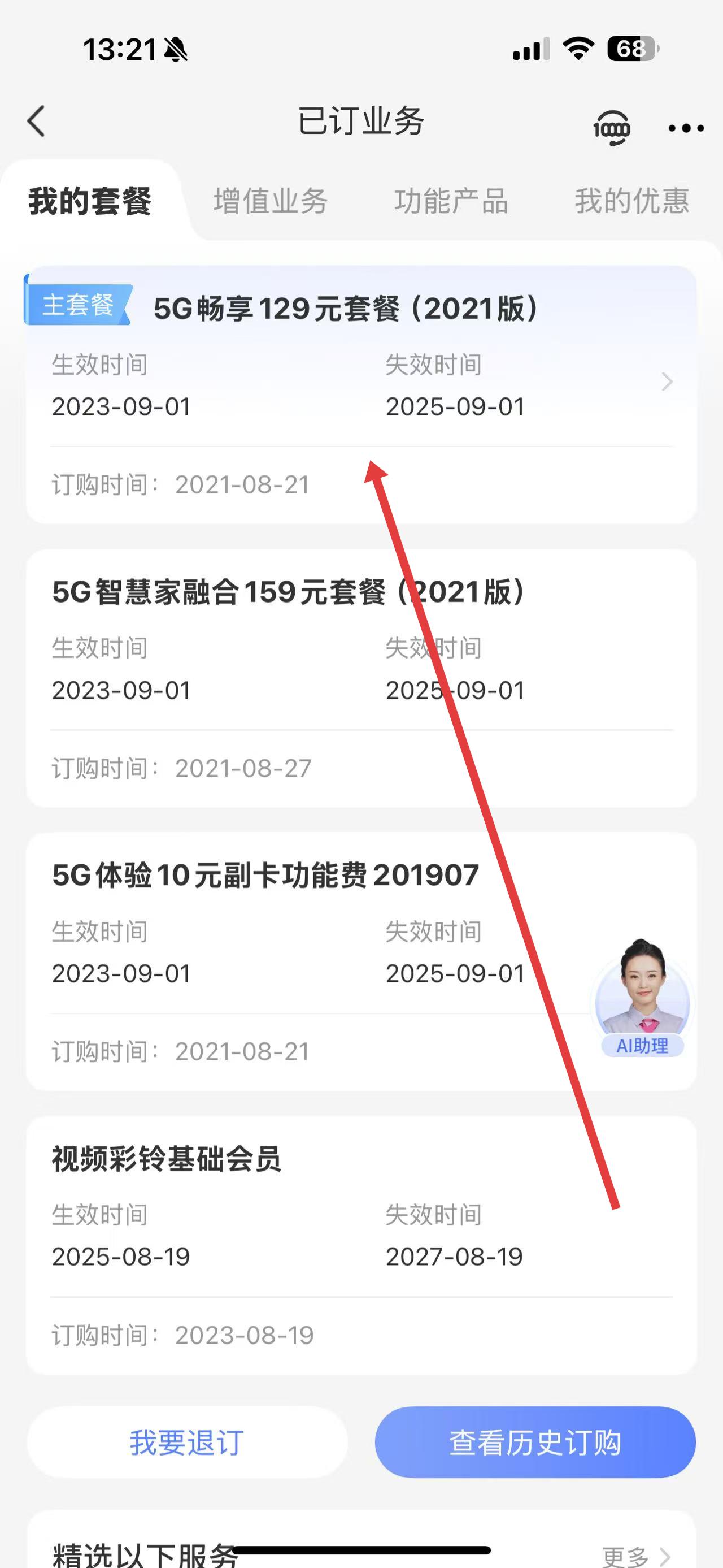 2、在已訂業(yè)務(wù)界面中的我的套餐欄目下,能看到已訂購(gòu)的套餐列表,點(diǎn)擊想要查看詳情的套餐名稱(chēng)進(jìn)入詳情頁(yè)。
