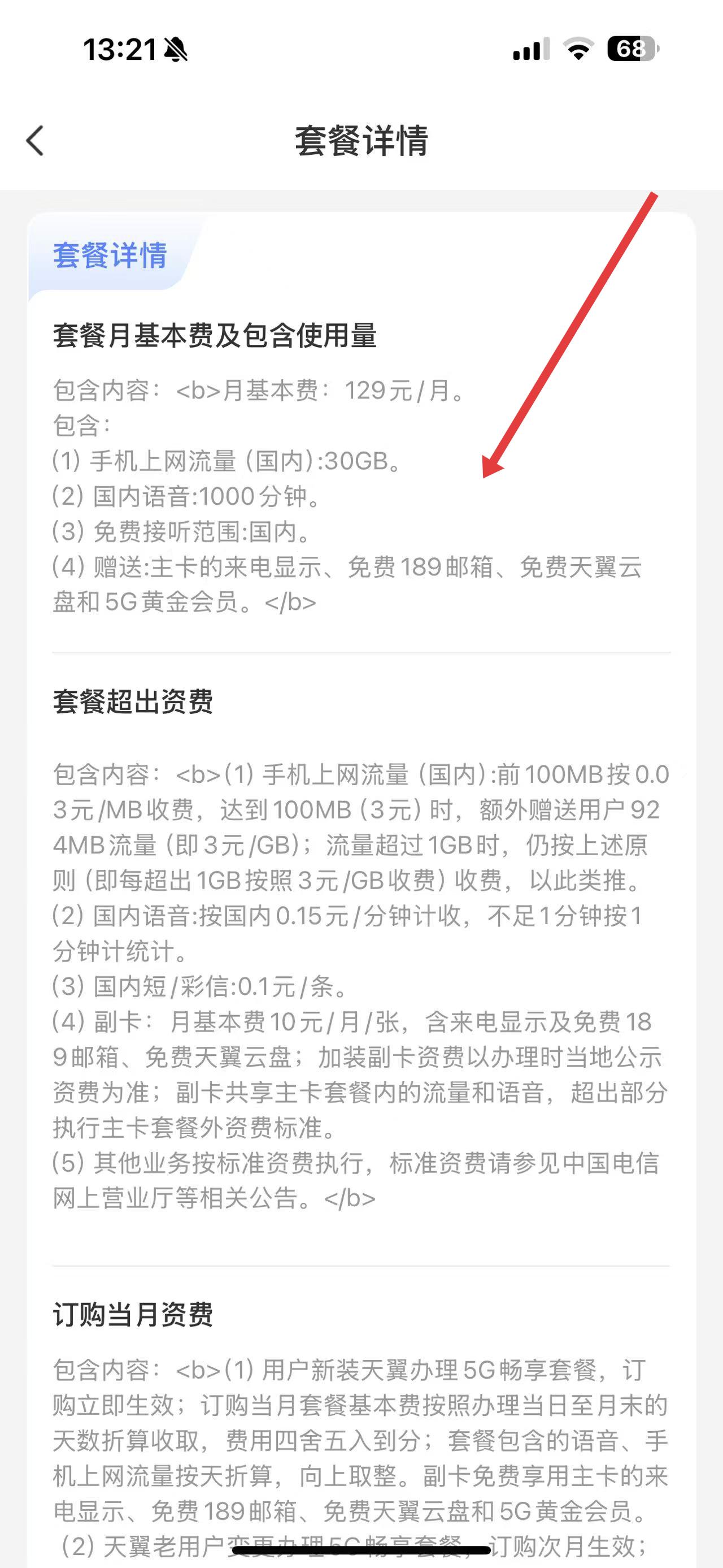 3、在套餐詳情頁(yè)面,即可查看該套餐的月基本費(fèi)、包含的流量、語(yǔ)音通話時(shí)長(zhǎng)等具體內(nèi)容和超出套餐后的資費(fèi)標(biāo)準(zhǔn)。