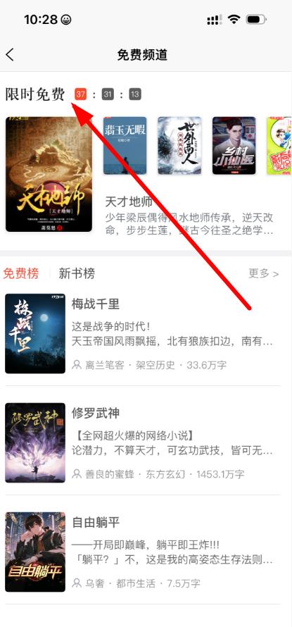 2、進(jìn)入免費(fèi)頻道頁面后,能看到限時(shí)免費(fèi)的小說推薦,這里會(huì)展示正在限時(shí)免費(fèi)閱讀的小說。