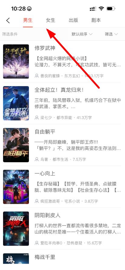 3、還設(shè)有免費(fèi)榜和新書榜,點(diǎn)擊上方的男生女生出版等分類標(biāo)簽,可以篩選查看不同類型的免費(fèi)小說,找到感興趣的小說點(diǎn)擊即可開始閱讀。