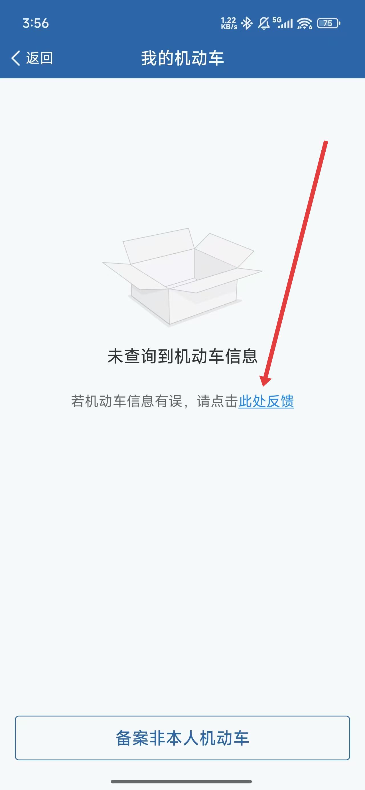 3、跳轉(zhuǎn)到我的機(jī)動(dòng)車頁面后,點(diǎn)擊此處反饋按鈕準(zhǔn)備進(jìn)行反饋操作。