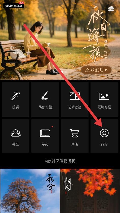 1、打開(kāi)mix濾鏡大師,點(diǎn)擊界面右下角我的選項(xiàng)。
