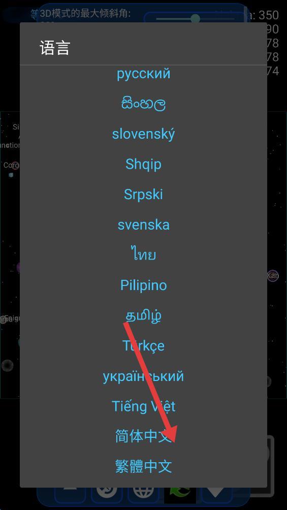 3、在彈出的語言選擇列表中,找到并點(diǎn)擊簡體中文或繁體中文選項(xiàng)。