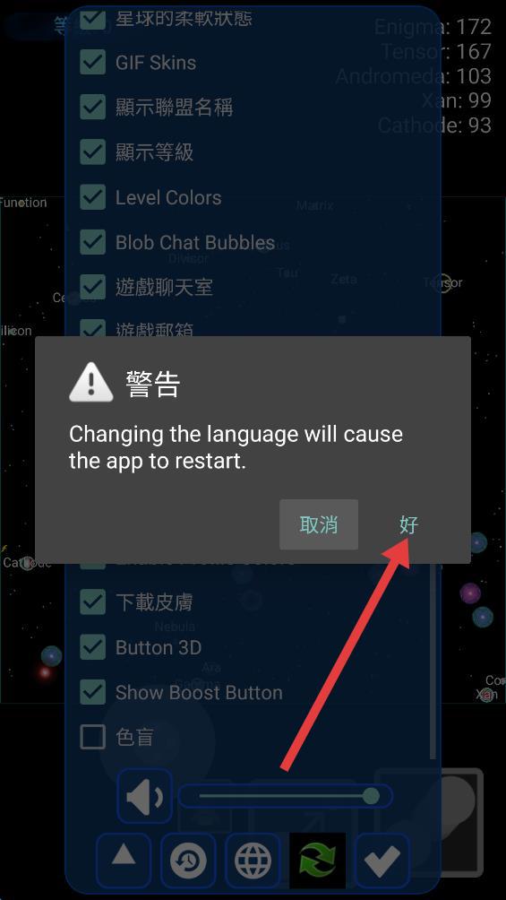 4、待彈出提示頁面,點(diǎn)擊好,等待游戲重啟后,語言就會(huì)調(diào)整為中文。