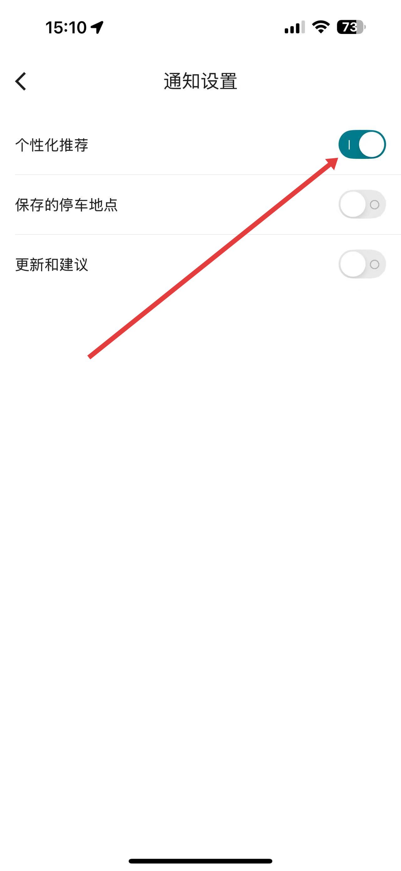3、在通知設(shè)置界面中,找到個性化推薦右側(cè)的開關(guān)按鈕,點擊將其關(guān)閉,即可完成關(guān)閉個性化推薦設(shè)置。