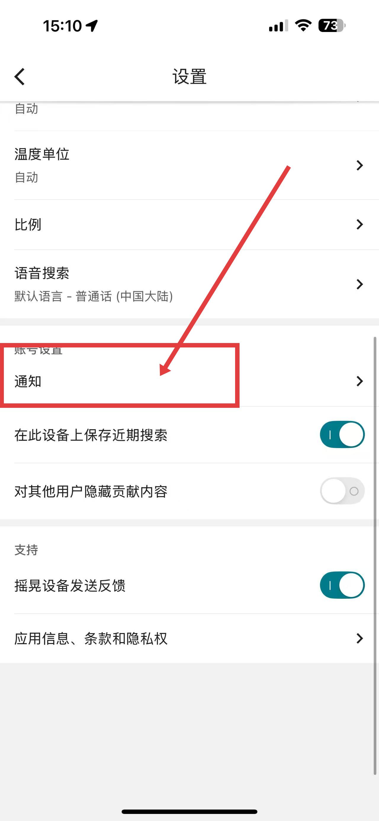 2、在設(shè)置頁面向下滑動,找到并點擊通知選項,進入通知設(shè)置界面。
