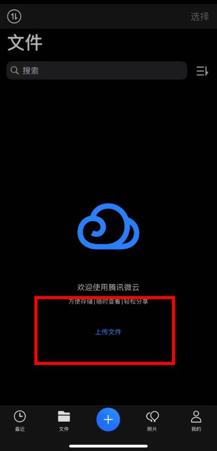 1、打開微云進(jìn)入文件界面,點(diǎn)擊上傳文件按鈕。