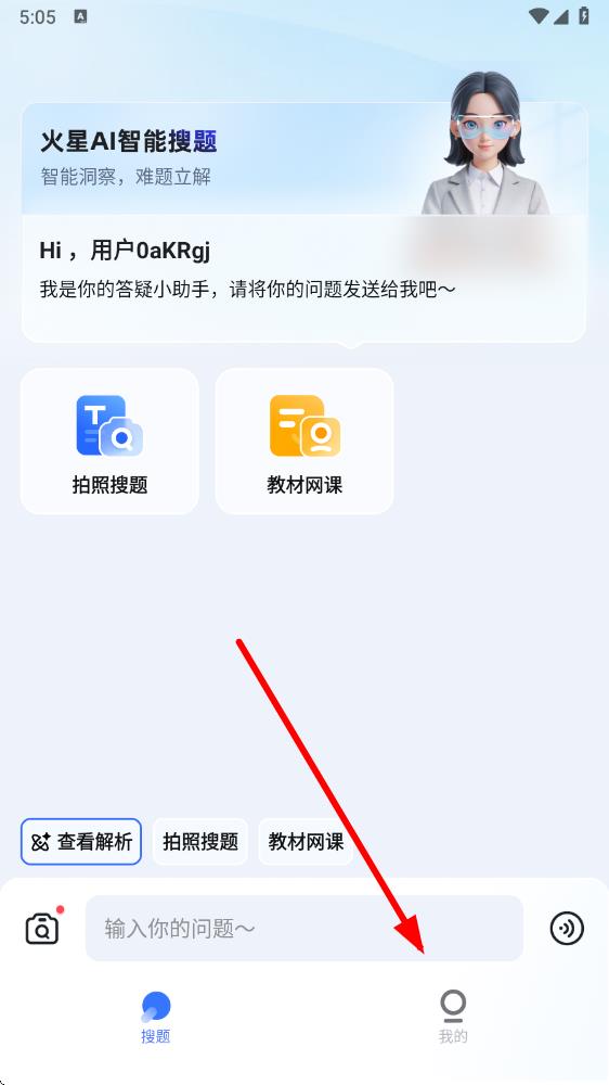 1、打開火星搜題app,點(diǎn)擊底部導(dǎo)航欄中的我的,進(jìn)入個人相關(guān)頁面。
