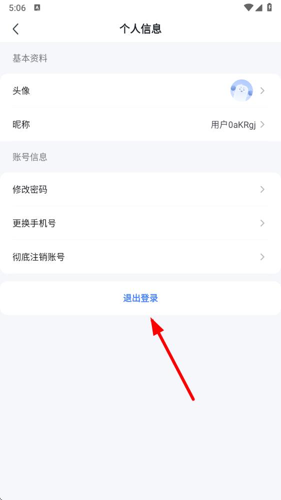 3、在個人信息頁面里,點(diǎn)擊退出登錄選項(xiàng),退出當(dāng)前賬號。