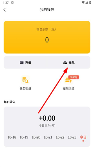 2、在我的錢包頁面點(diǎn)擊提現(xiàn)選項(xiàng),進(jìn)入提現(xiàn)頁面。