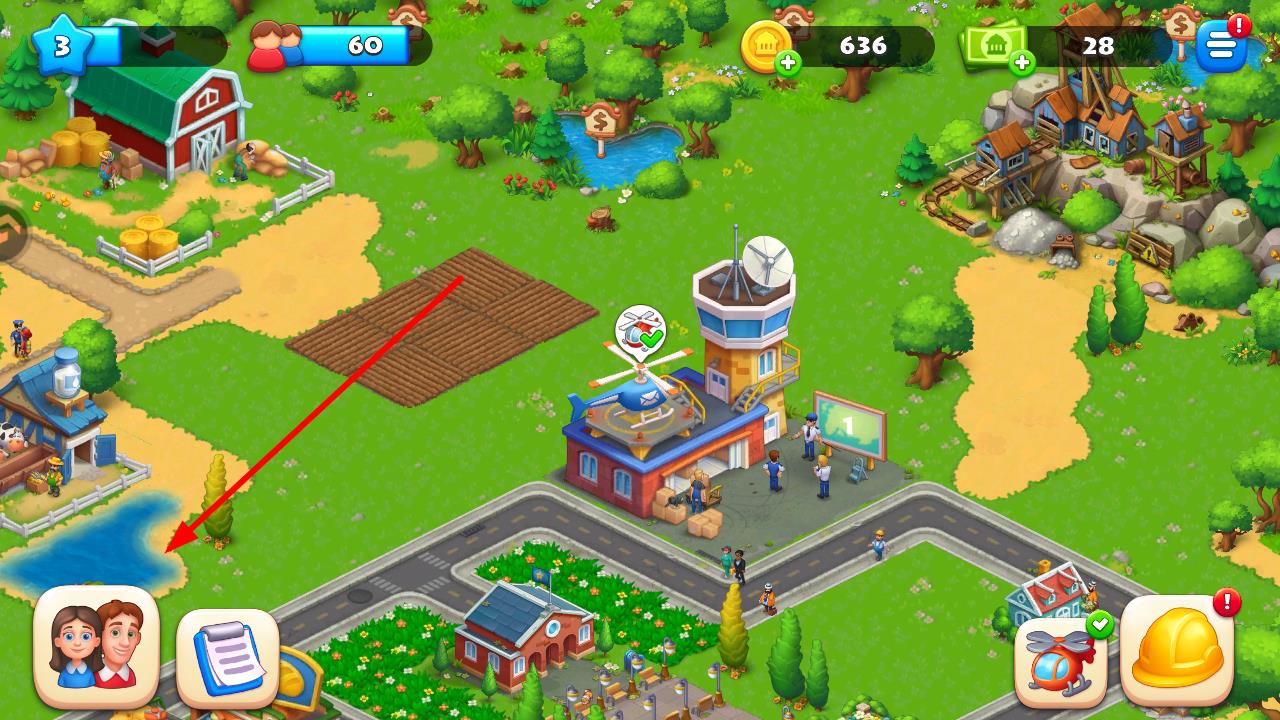 1、打開夢(mèng)想城鎮(zhèn)游戲,進(jìn)入主界面,在屏幕左下角找到帶有兩個(gè)卡通人物頭像的圖標(biāo),點(diǎn)擊它進(jìn)入好友相關(guān)界面。
