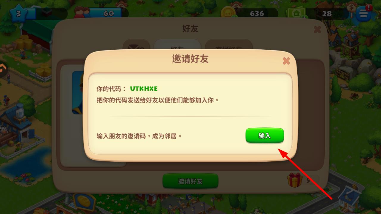 3、點(diǎn)擊邀請(qǐng)好友后,這里會(huì)顯示你的專屬邀請(qǐng)代碼,你可以把這個(gè)代碼發(fā)送給好友輸入代碼加入,若你想添加別人為好友,點(diǎn)擊輸入按鈕,輸入對(duì)方的邀請(qǐng)碼,即可成功添加好友。