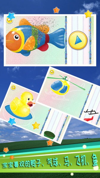 共15個關卡場景,分別有寶寶和兒童喜歡的鴨子、氣球、馬、飛機、魚等,設計非常精致、唯美。