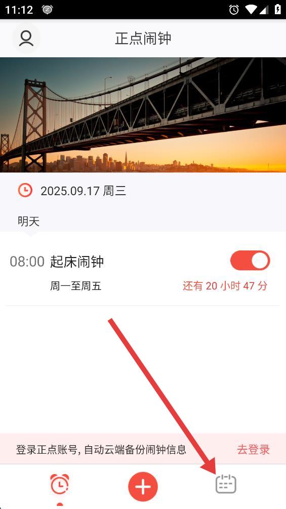 注冊(cè)并登錄正點(diǎn)鬧鐘,云端同步備份鬧鐘列表,換設(shè)備也不怕啦!