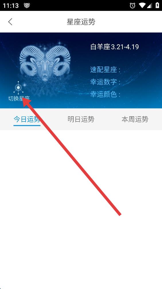 3、在星座運(yùn)勢(shì)詳情頁面,點(diǎn)擊切換星座按鈕,進(jìn)入選擇星座的界面。