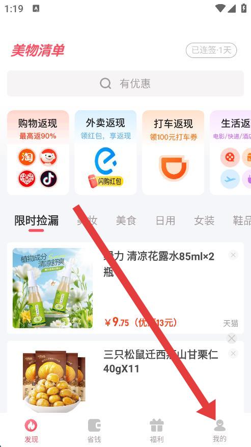 1、打開(kāi)美物清單app,點(diǎn)擊底部導(dǎo)航欄最右側(cè)的我的選項(xiàng)。