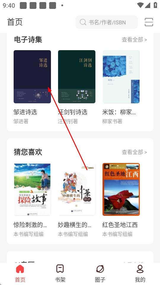 1、打開暢想之星App,在首頁找到想要加入書架的書籍,點(diǎn)擊書籍封面。