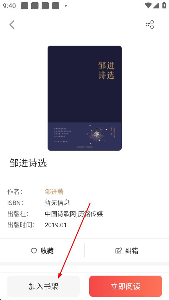 2、進(jìn)入書籍詳情頁面后,點(diǎn)擊加入書架按鈕。