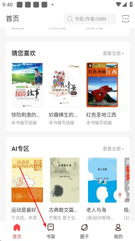 3、點(diǎn)擊底部導(dǎo)航欄中的書架圖標(biāo)。