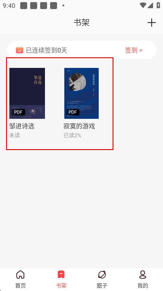 4、在書架頁面中,即可看到剛剛加入書架的書籍。