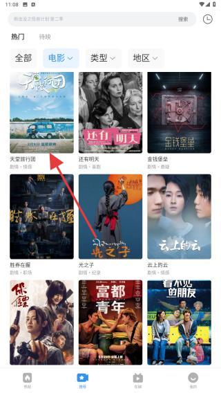 2、通過(guò)類型、地區(qū)等篩選項(xiàng)縮小范圍,瀏覽推薦影片封面或標(biāo)題,點(diǎn)擊進(jìn)入詳情頁(yè)。
