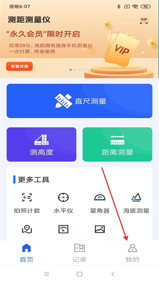 1、打開測距測量儀APP,進入到首頁內并點擊右下角我的功能圖標。