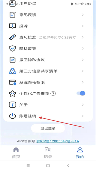 2、在我的頁面內,向下滑動找到并點擊賬號注銷的功能按鈕。