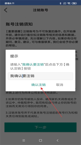 4、在彈出的提示中,輸入我確認要注銷,再點擊確認注銷的按鈕即可完成。