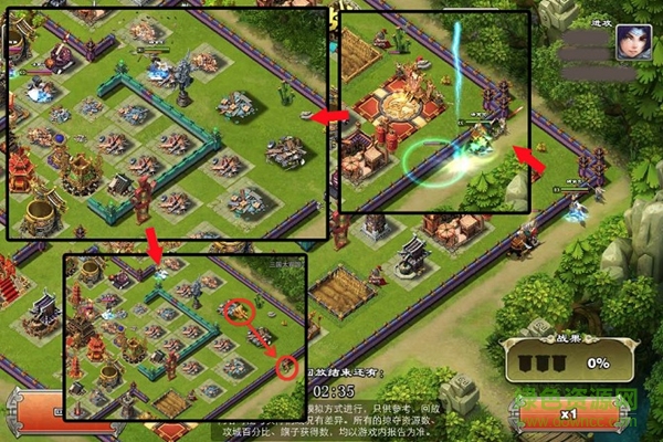 我們選擇的戰(zhàn)術(shù)是:清邊為先,諸葛亮清理援軍及吸引防守?cái)硨⑨尫偶寄?,隨后再用刀盾兵把月英的小車吸引出來。當(dāng)然,月英的技能是有時(shí)間限制的,你也可以等小車自動(dòng)消失。