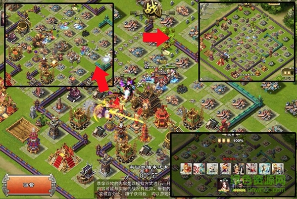 接下來,用弓箭清掃另外一角,用曹操等盾類武將抗在之前,如果血量不夠的可以加戰(zhàn)象以及重騎,一定要讓你的先頭部隊(duì) “厚”起來。