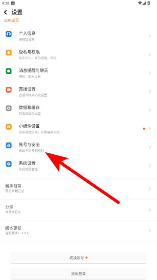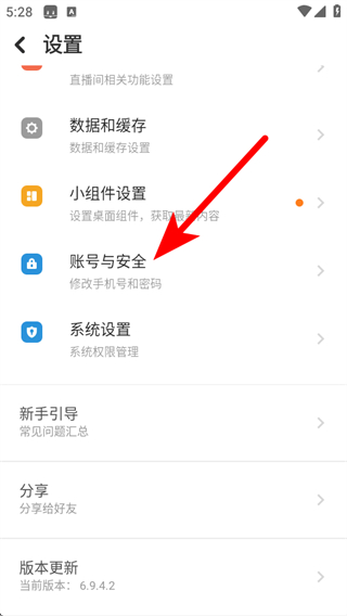 4、進(jìn)入設(shè)置頁面后,點(diǎn)擊賬號(hào)與安全選項(xiàng)。